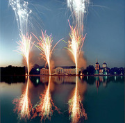 Наземные фейерверки - это фейерверк, высота действия которого не превышает 5 - 7 метров. К таким фейерверкам относятся фейерверочные фигуры из искристых фонтанов и огненных колес, "водопады", звуковые эффекты (свист, хлопки и др.